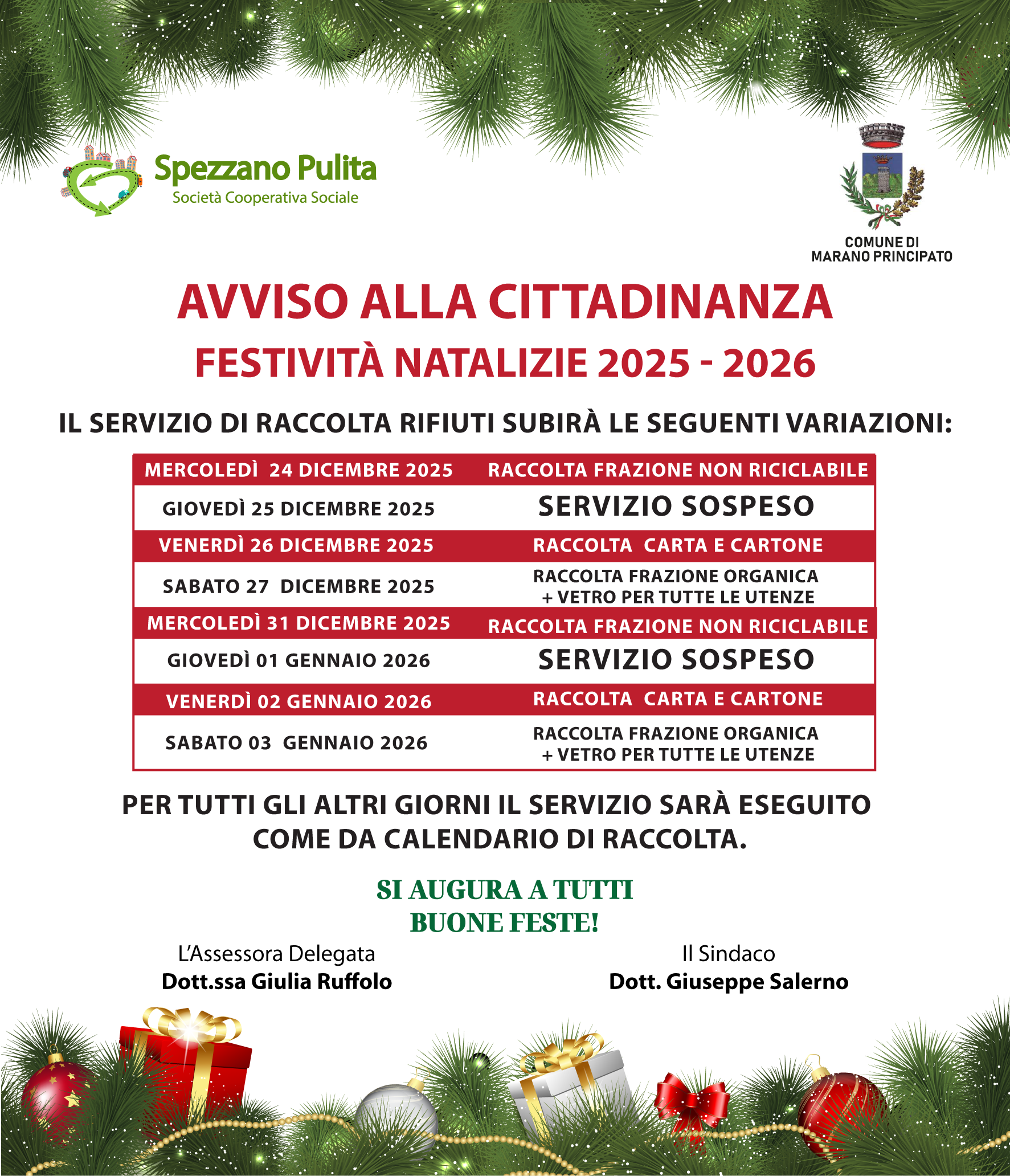 Servizio Raccolta Rifiuti Festività Natalizie 2025-2026.