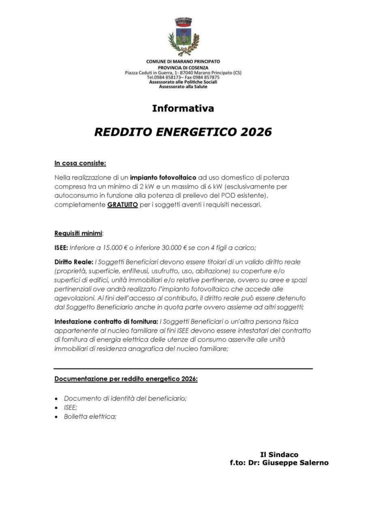 Reddito energetico anno 2026.